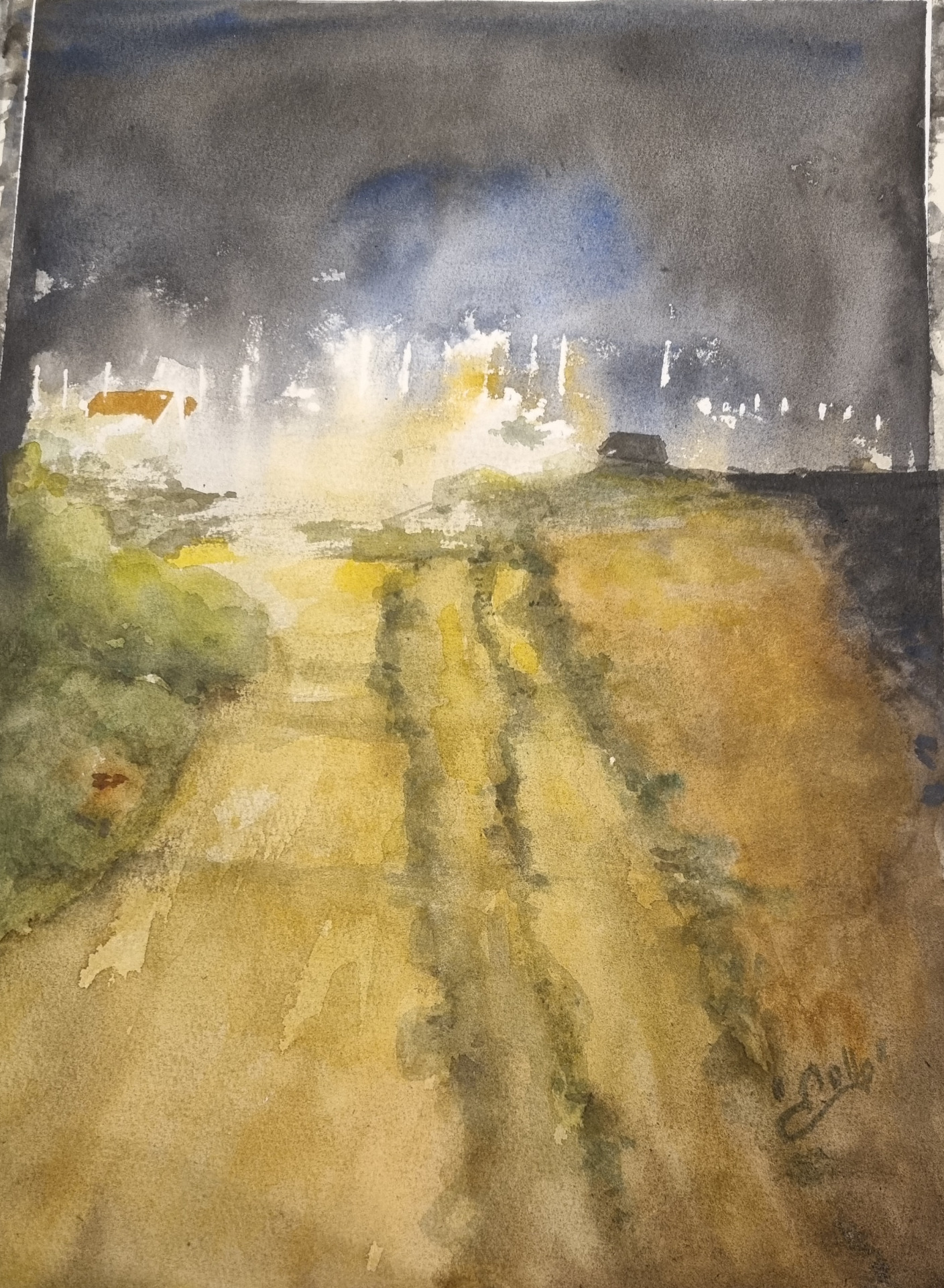 V30. "Lanningen" stranden på Råå 40X50 cm inramad akvarell 2022